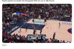 去年11月13日和15日,勇士连胜马刺两场(125-120;109-108),库里分别砍下了46分和49分。