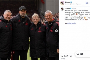 在社交媒体上,克洛普晒出了自己和达格利什、伊恩·拉什以及约翰·阿尔德里奇等3名利物浦传奇的合影,他写道:一个从不敢奢望的梦想成真了,这是我人生中第一次担任助教。能够与伊恩·拉什和约翰·阿尔德里奇一起协助达格利什爵士,我感到非常荣幸!我希望我的表现还算不错。当然,我们在一起度过了很多欢乐时光。