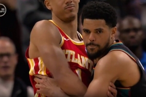 裁判开始吹哈里斯防守犯规,活塞挑战成功,杰伦·约翰逊进攻犯规